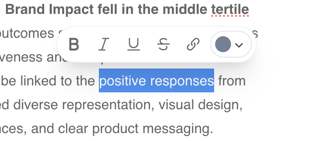 Interact with any text to begin editing. You can bold, italicize, underline, strikethrough, add a hyperlink, or change the text color.