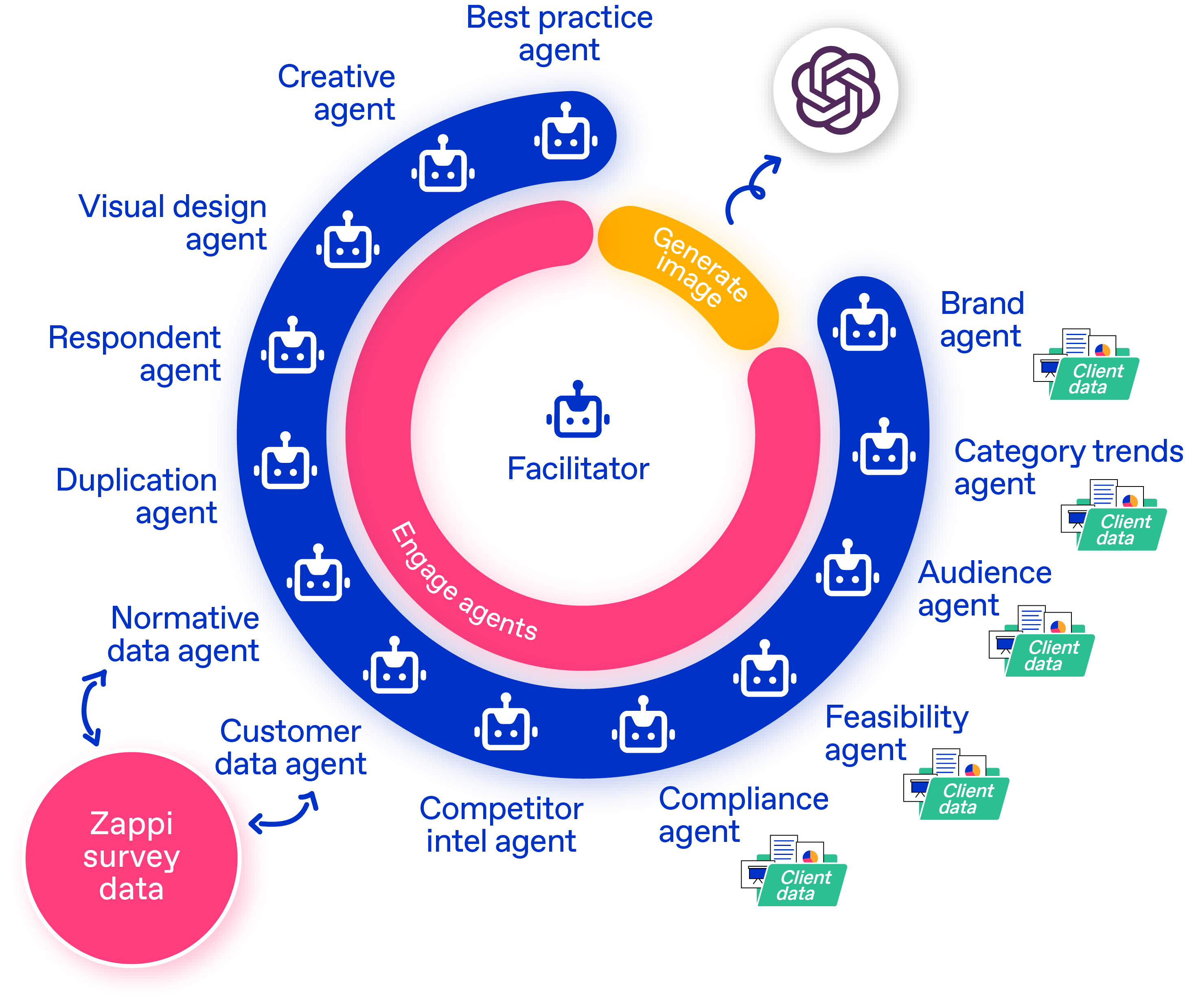 The Zappi Marketing AgentsTM are a collection of Large Language Model (LLM) assistants with embedded expertise, access to relevant data and chosen inputs to facilitate a wide array of virtual marketing related tasks.