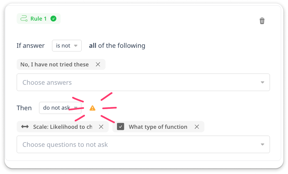 However, since this is easy to misconfigure, an icon will appear when it's set up in a way that creates the 'Ask only if' question.