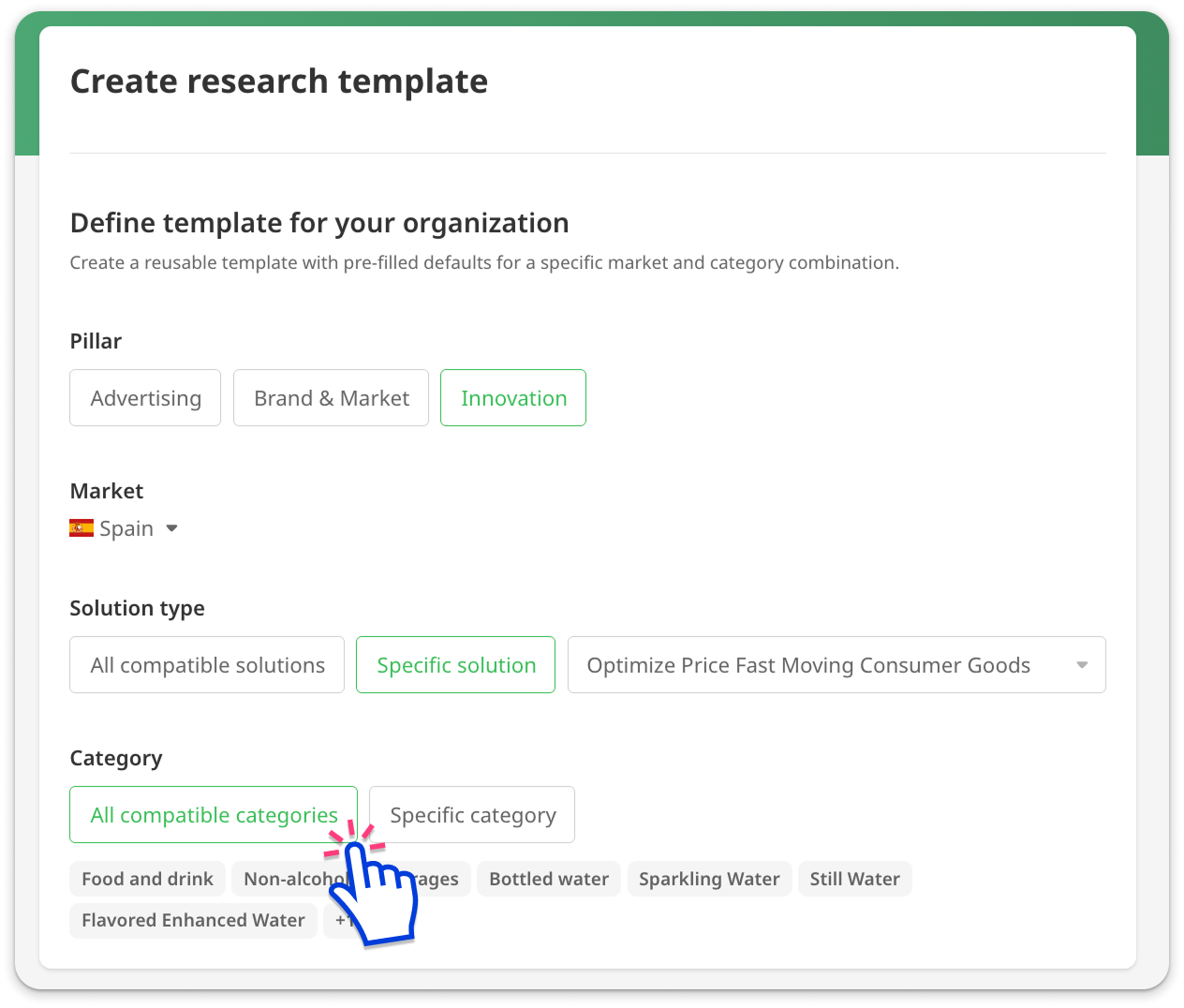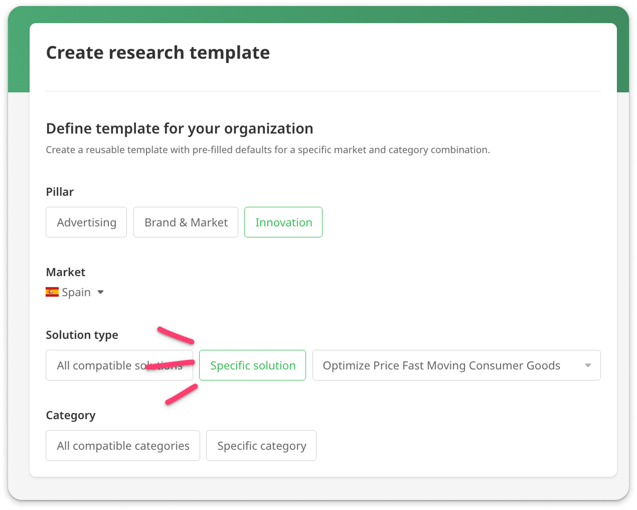 - Choose one specific category to apply the template to.