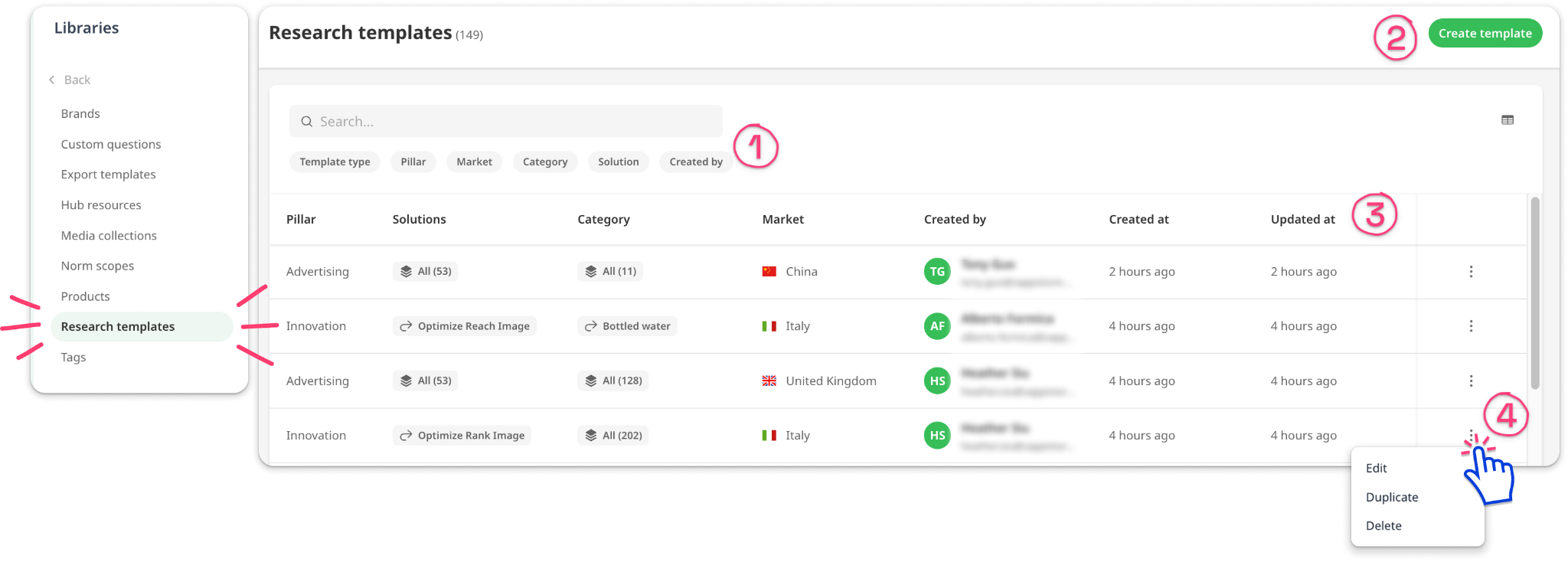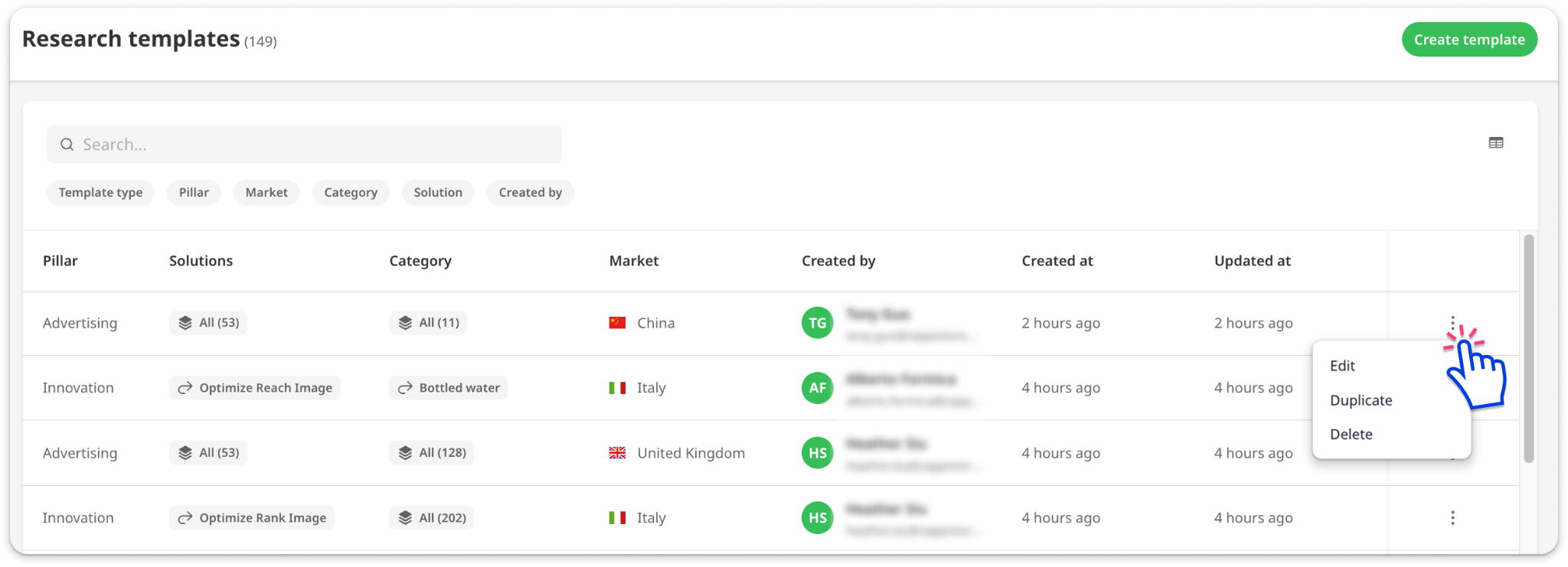 - Edit, duplicate, or delete templates.