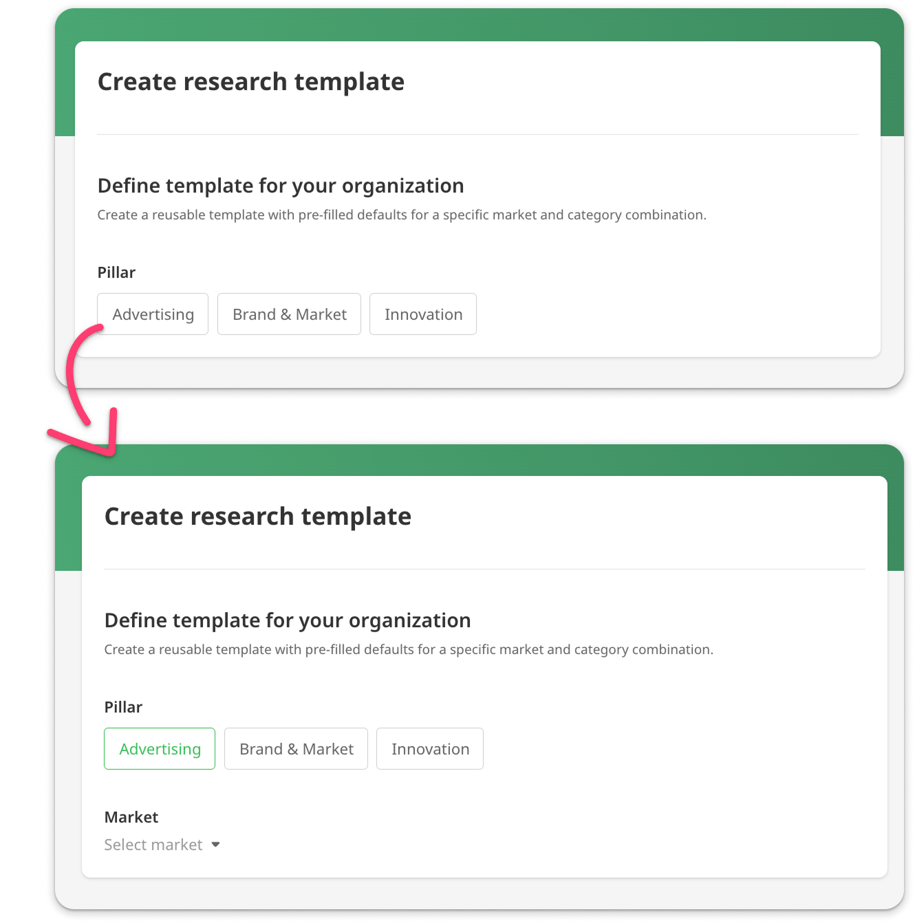 Use research templates to pre-set some configuration details to make it easier to launch projects and help your team keep consistency across surveys so the data will be easily comparable, leading to better learning over time.