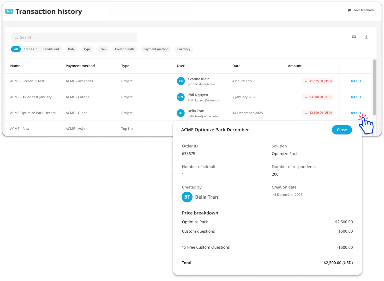 Click ‘Details’ to find more information about the individual transaction.