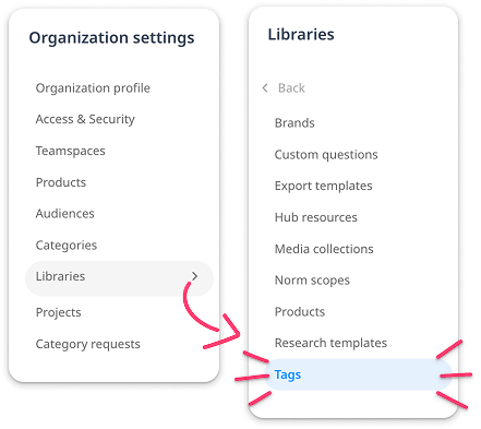 Go to Organization Settings > Libraries > Tags, and as a power user, you will see a summary of all tags across all the Zappi tools used in your domain (or it will be empty if none have been added).