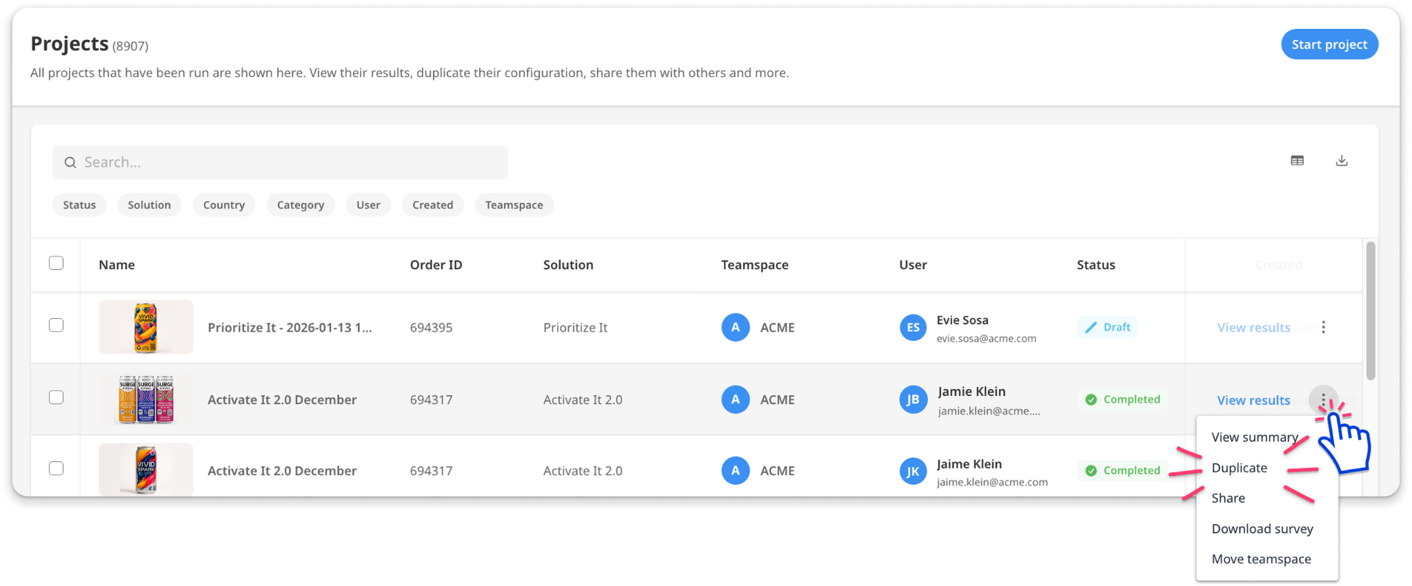 Before duplicating a project, it's best to ensure it's shared with the right members in your organization. Find out how in our article on sharing configurations.