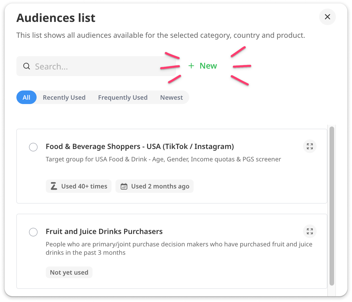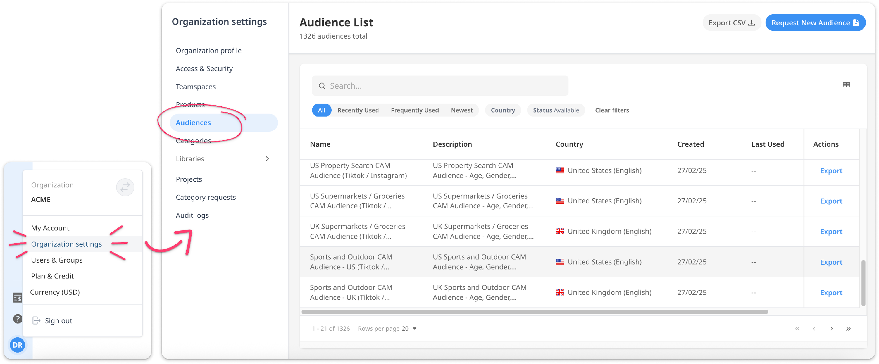 - Double check for existing audiences: Save time by checking your existing audiences before submitting a new request, you might find exactly what you need is already available!